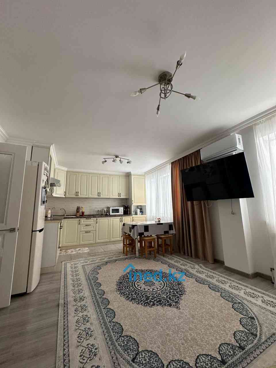Пластиковые окна, кухня-студия, встроенная кухня, кондиционер. Просторная, светлая и уютная квартира, находится на последнем этаже. С крышей проблем нет. Отстутствие соседей сверху гарантирует тишину. Имеется чистый паркинг. Отличная локация, рядом школы, садики. Закрытый и безопасный двор, чистый подъезд. Идеальное место для вечерней прогулки, рядом находится мечеть Хазрет Султан, театр, поликлиника в шаговой доступности