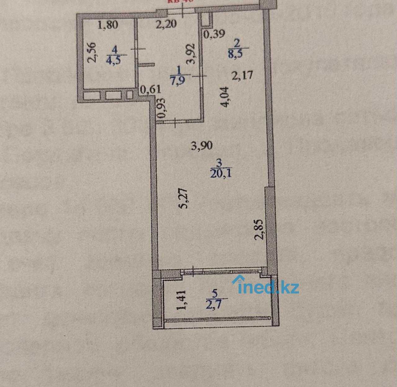 1 комнатная квартира 40.29 кв2