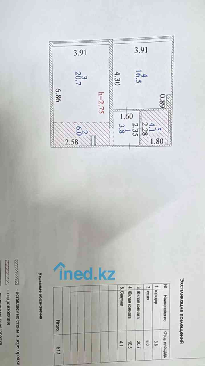 2 комнатная Квартира 51 кв/м