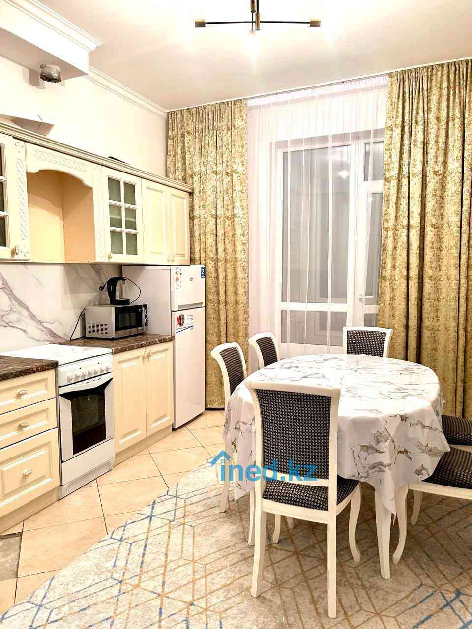 ### ? Локация Квартира расположена в **одном из самых динамично развивающихся районов столицы** — рядом с **Mega Silk Way** и **Nazarbayev University**. В шаговой доступности: * **ТРЦ Mega Silk Way**, **EXPO**, **Astana Hub**, **Barys Arena** * **Международная школа Haileybury**, **Назарбаев Университет**, **Школа-лицей №85** * Кафе, фитнес-центры, аптеки, магазины и всё необходимое для жизни * Удобный выезд на **Кабанбай батыра**, **Хусейн бен Талал** и **Мангилик Ел** --- ### ? О квартире * **Площадь — 87.3 м²**, продуманная планировка * **3 отдельные комнаты**, просторная **кухня — 12 м²** * **2 санузла**, что удобно для семьи * **Несколько балконов/лоджий** — много света и воздуха * **Высота потолков — 3 м** * **Отдельная гардеробная в мастер-спальне** * **Полностью меблирована**, можно заехать и жить * **Интернет — через ТВ-кабель** * **Пол — ламинат**, **дверь — металлическая** * **Состояние:** не новый, но **аккуратный ремонт**, квартира тёплая и ухоженная --- ### ? Безопасность и комфорт * **Закрытый двор** * **Видеонаблюдение и видеодомофон** * **Современный лифт**, который спускается прямо в подземный паркинг — удобно при разгрузке покупок