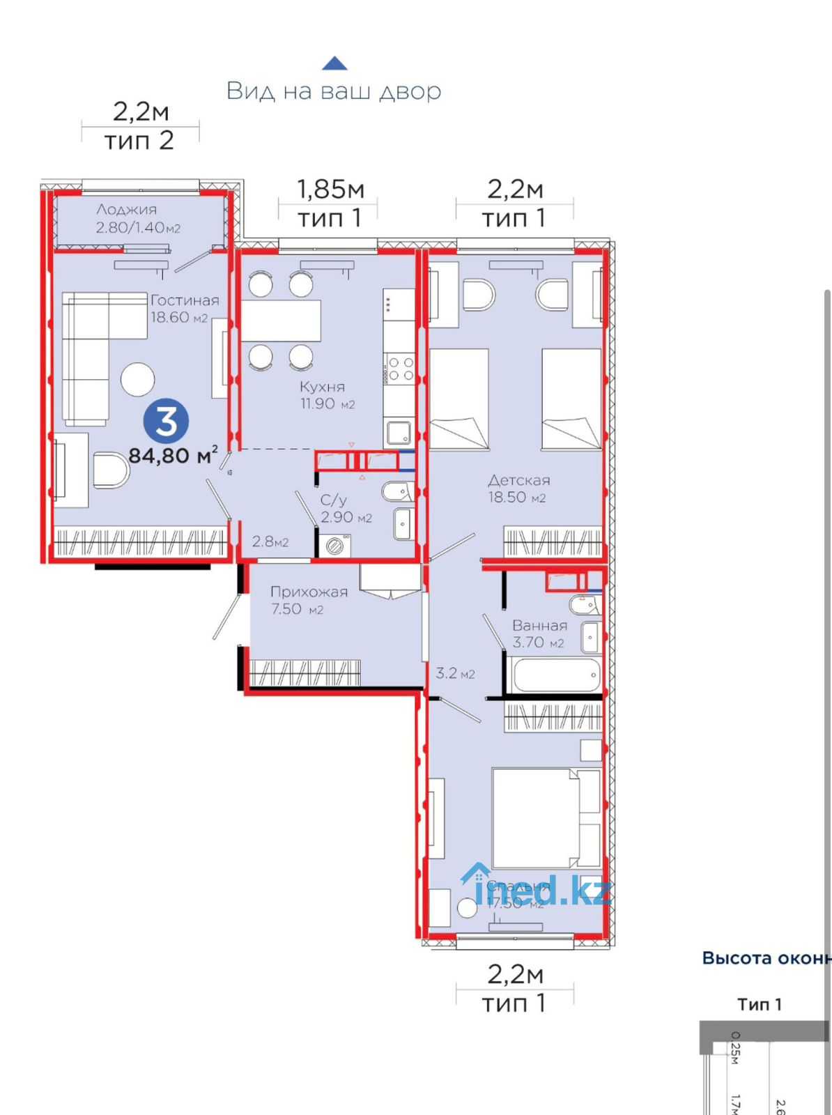 3 комнатная Квартира 84.6 кв/м
