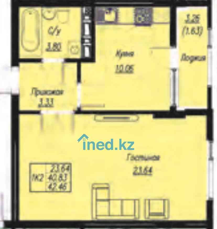 2 комнатная Квартира 41.3 кв/м