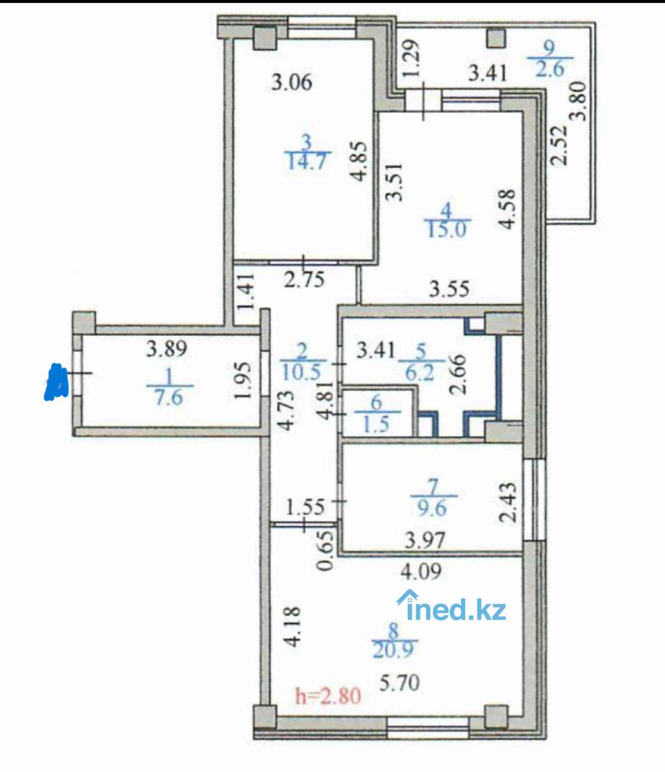 3 комнатная Квартира 83.8 кв/м