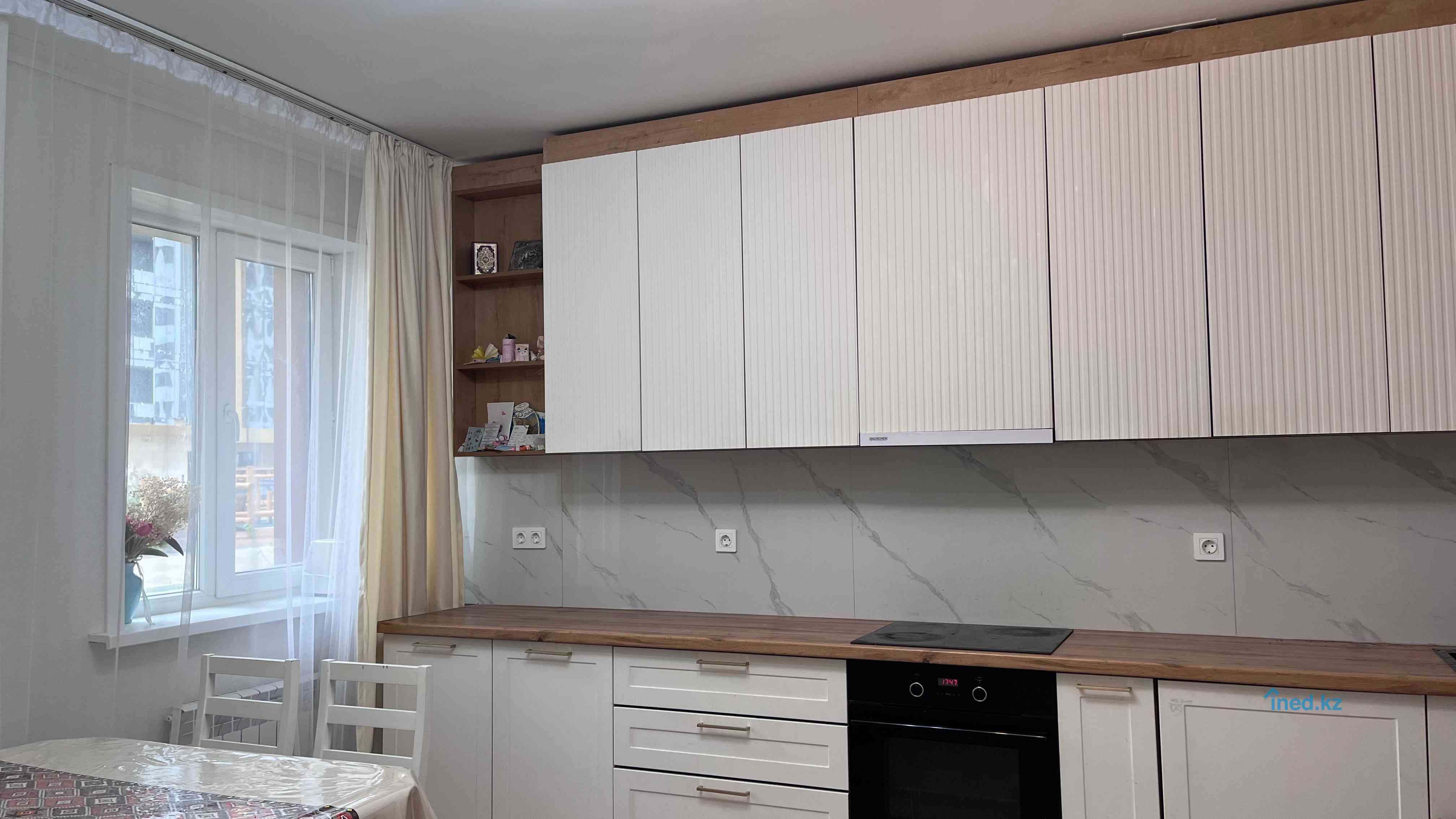 З-комнатная квартира 107 м2в ЖК Нazar, Мэнгілік Ел 62 — Топовая локация + простор Преимущества квартирых Просторные 107 м2 с правильной планировкой: все комнаты изолированные, распашонка Большая светлая гостиная с выходом на лоджию, кухня с большой рабочей поверхностью. Встроенная техника Hansa, Dauscher, Media, Dexp остаётся новому владельцу Гардеробная в спальне + системы хранения остаются. Просторная лоджия и балкон — дополнительное внушительное пространство